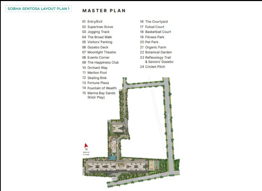 Sobha Sentosa is a grand Residential Township located on Panathur Road in Bangalore East. The premise is inspired by the island resort of Sentosa in Singapore. This new venture by Sobha recreates the same charm and charisma in our garden city. The project hosts artfully crafted 3 BHK apartments set over 7 high towers. The site spans over 7.5 acres. It hosts 533 flats in a size range of 1507 – 1804 sq ft.
